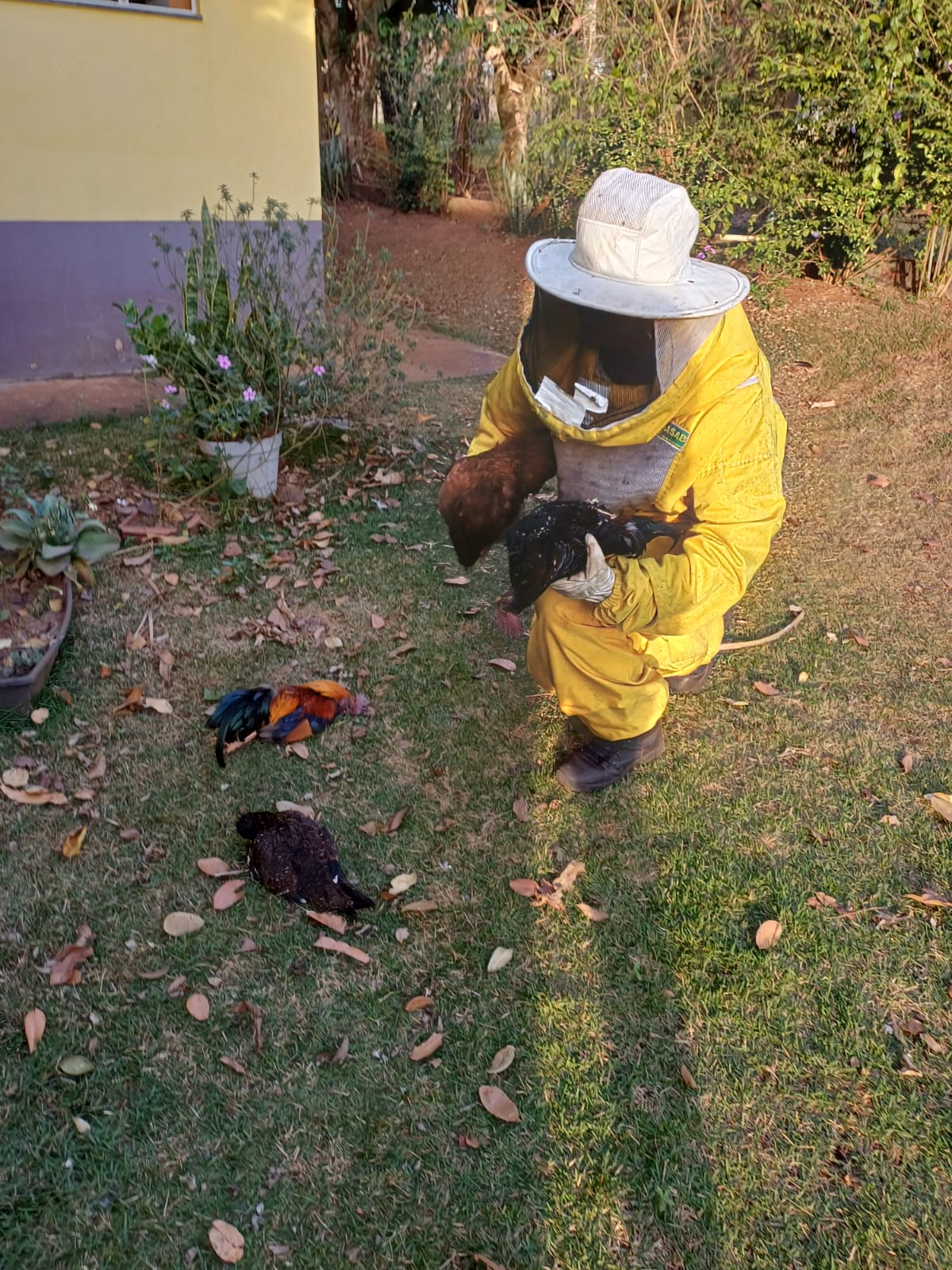 De acordo com o relato do sargento Monteiro, do Corpo de Bombeiros, a equipe foi acionada para atender a um morador alérgico que estava protegido dentro de casa enquanto seus animais eram atacados. “Nós já viemos preparados, usamos o traje típico de apicultor e de pronta nós adentramos o quintal e verificamos que havia vários animais sendo atacados, inclusive alguns já mortos”, disse o sargento.