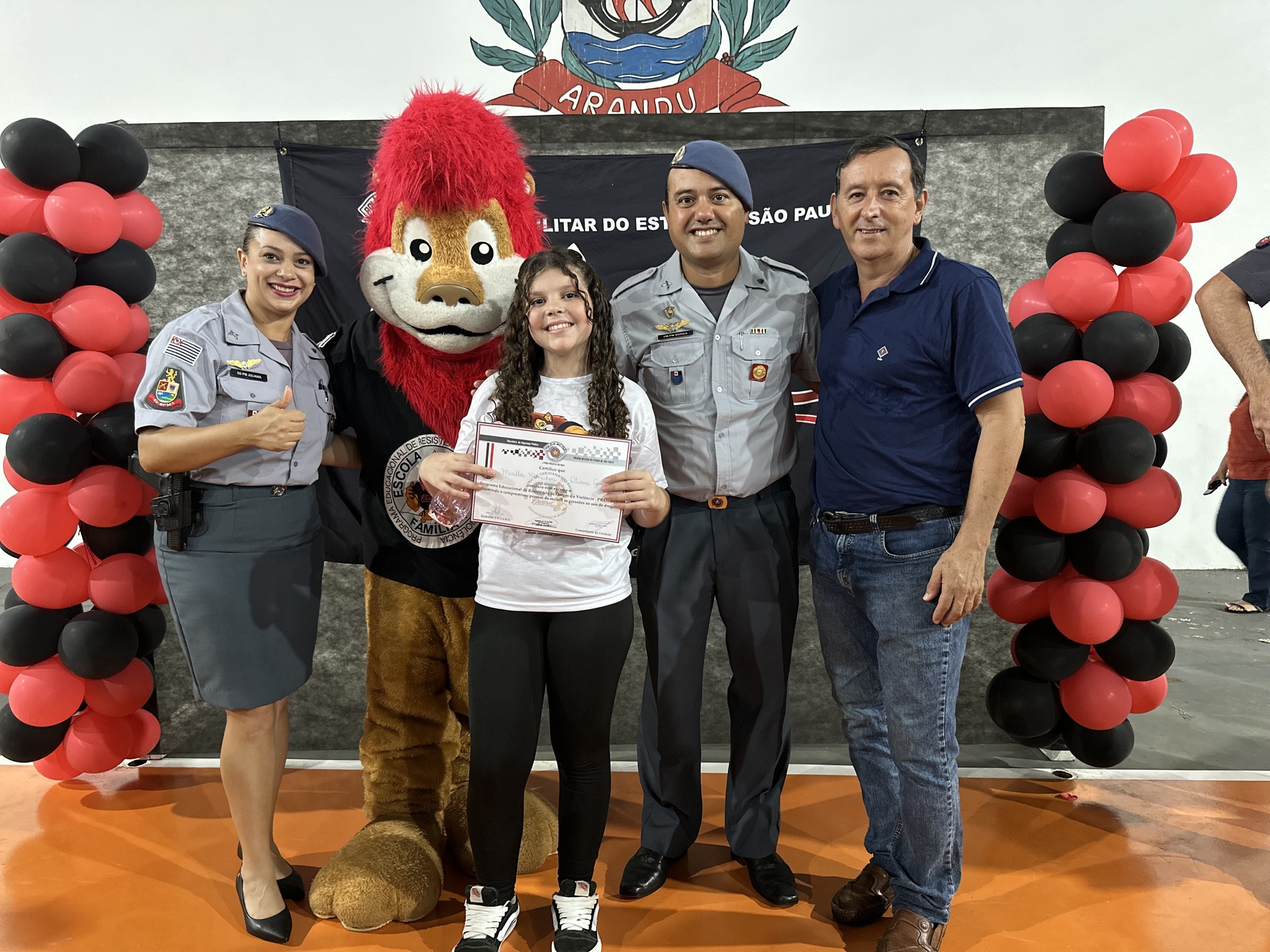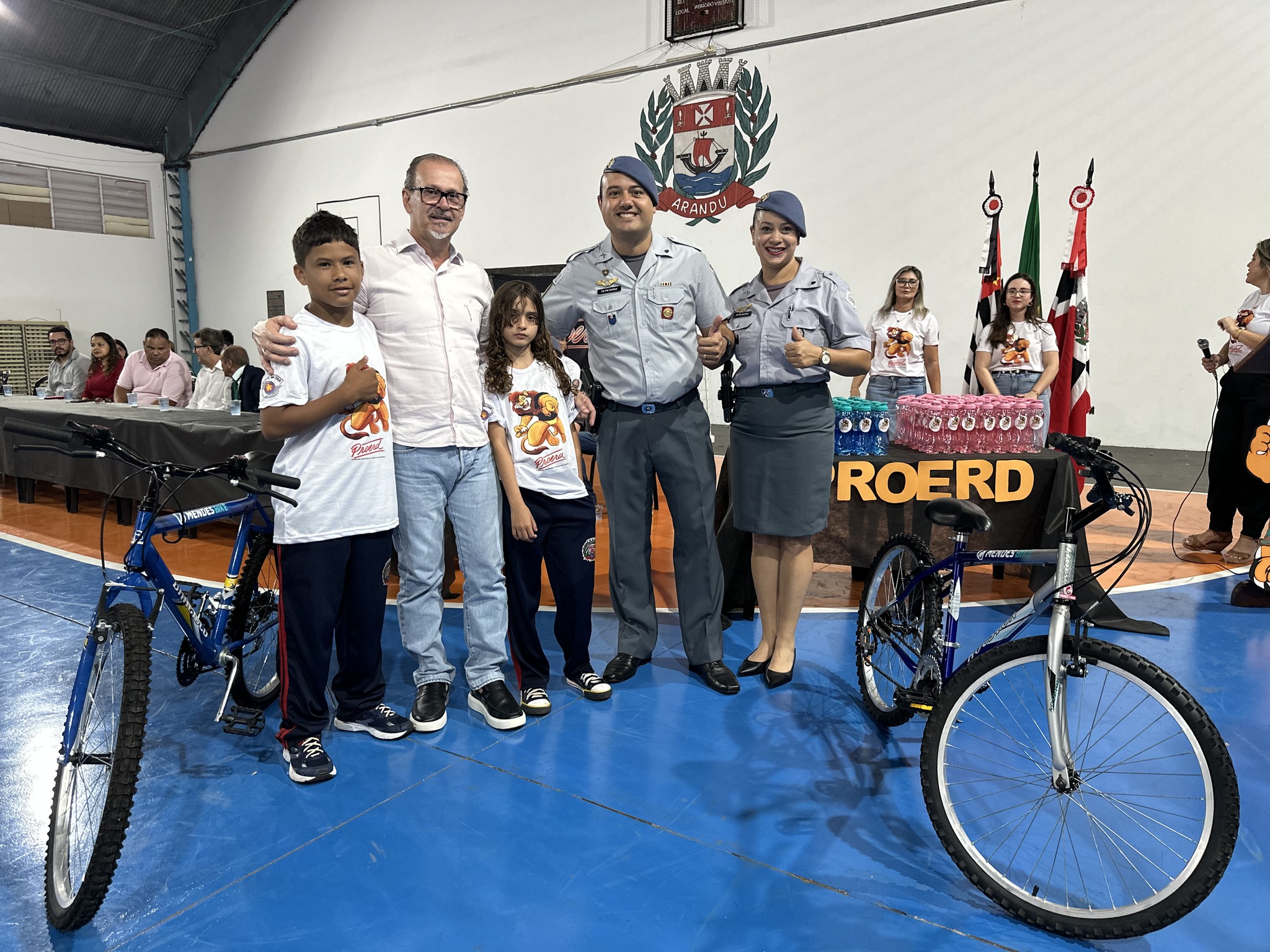 A Prefeitura Municipal de Arandu, através da Secretaria de Educação, celebrou na segunda-feira (08), a formatura de mais uma turma do PROERD (Programa Educacional de Resistência às Drogas e à Violência). A cerimônia, realizada no Ginásio Mauro Rodrigues, marcou a conclusão do curso para os alunos e reiterou o empenho da administração municipal em promover um futuro mais seguro para as crianças.