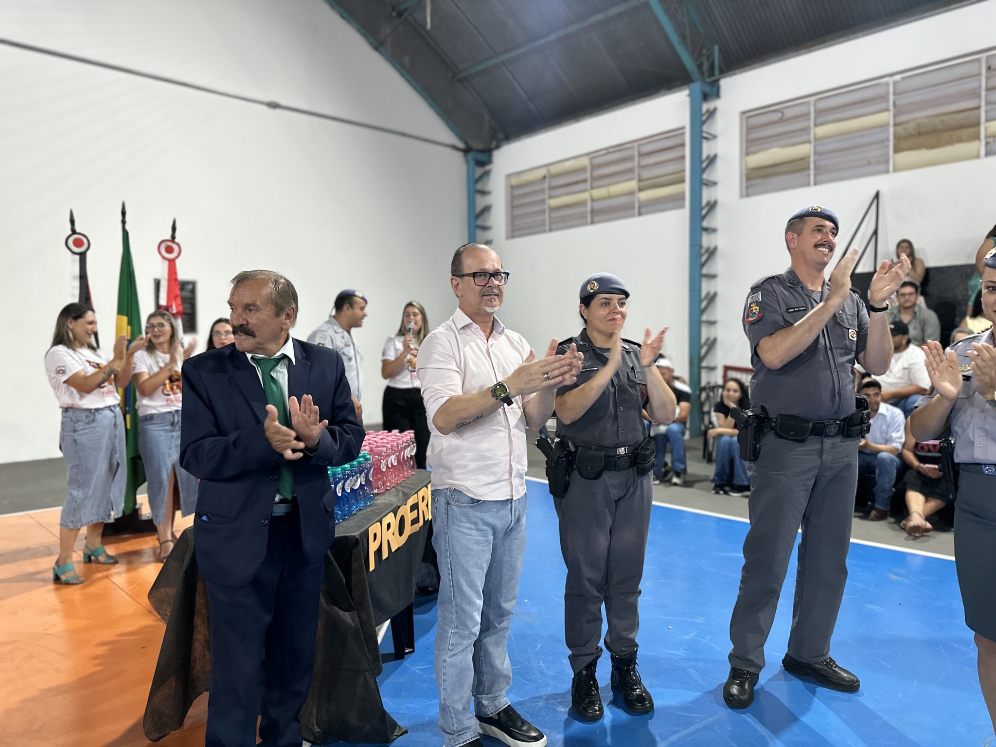 O evento contou com uma forte presença de autoridades, demonstrando o apoio institucional ao programa. Pela Polícia Militar, prestigiaram a solenidade o 1º Sargento Danúbia Pereira, o 1º Sargento Tobias Teodoro, o Cabo Leonardo Sórba e a Soldado Juliana Fusco. A esfera política municipal foi representada pelo prefeito Flávio Galhego, o vice-prefeito Miguel Menechini, o presidente da Câmara José Bastos, e os vereadores Meire Ferreira, Célio Graciano, José Ilton e Leonardo Beraldo, além dos secretários municipais.