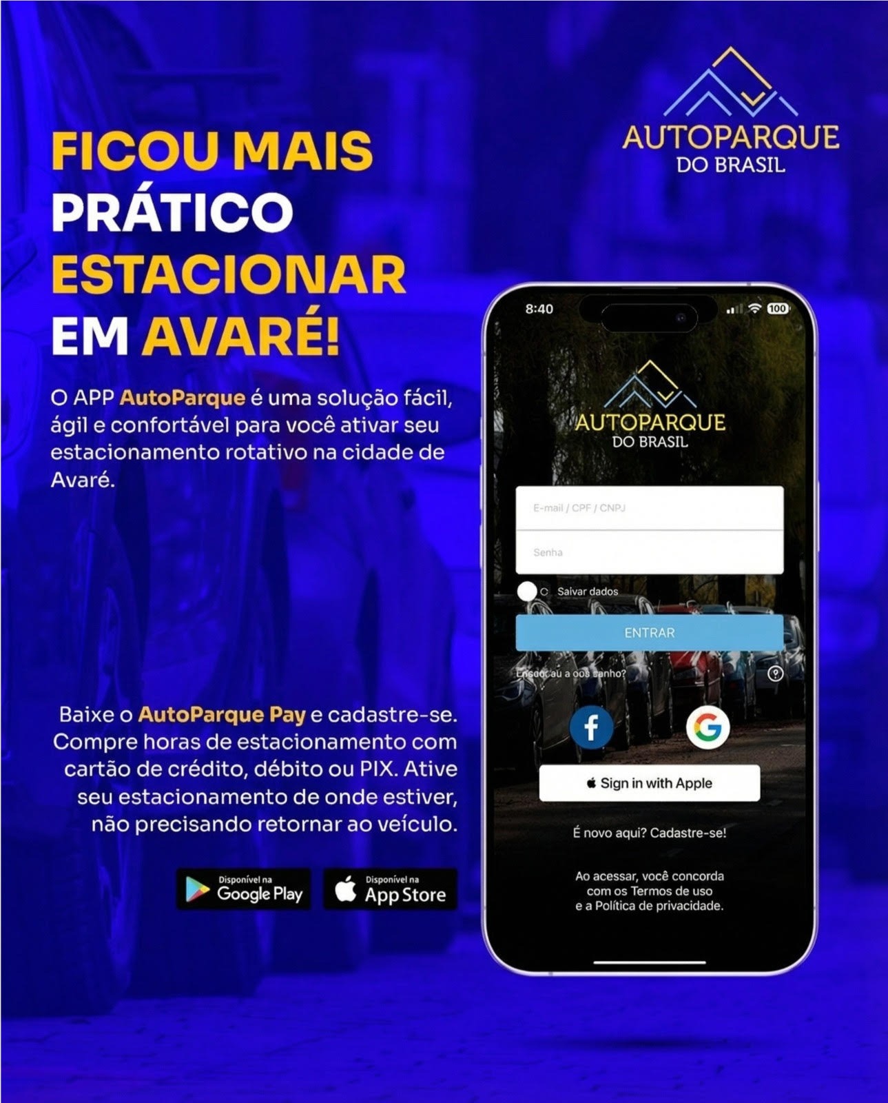 Para mais informações e download do app, acesse: autoparquepay.com.br